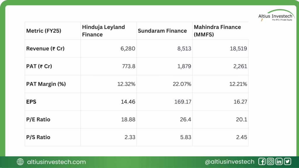 To see where Hinduja Leyland Finance (HLF) stands in the market, we’ve stacked it against two listed giants in the vehicle finance space: the gold-standard Sundaram Finance and the massive Mahindra Finance (MMFS).