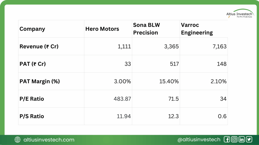 The market is telling a clear story. It values profitability and a strong EV focus above all else (Sona BLW). It is less enthusiastic about pure scale without profits (Varroc). For Hero Motors, the market is looking past the current numbers and pricing it for a spectacular future. An investment in Hero Motors is a high-risk, high-reward bet that its turnaround will succeed and its profits will grow exponentially to justify its current sky-high valuation.