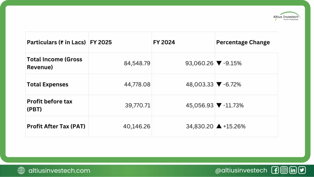 ASK IM’s standalone financials show a decrease in top-line revenue and pre-tax profit, but a significant jump in Profit After Tax (PAT) due to a tax credit in FY 2025. While total income declined by 9.15%, a sharper reduction in expenses led to a PAT growth of 15.26%. The negative tax expense in FY 2025 was a key driver of this net profit increase.