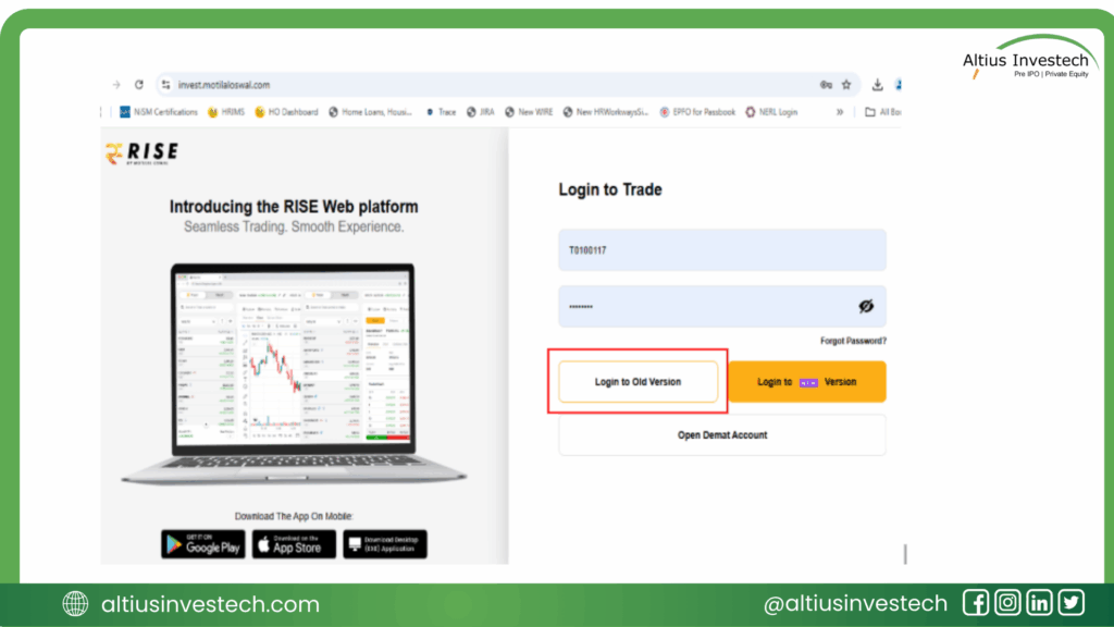 • Go to the Motilal Oswal website: https://invest.motilaloswal.com/.