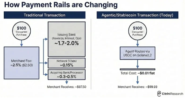 Then AI agents arrived, running silently in the background, 24/7, optimising every transaction you make. They have no favourite app. No habit. No patience for a 2.5% real estate commission when they can negotiate it down to under 1%. No reason to pay a 2-3% card fee when stablecoins settle instantly for fractions of a penny.