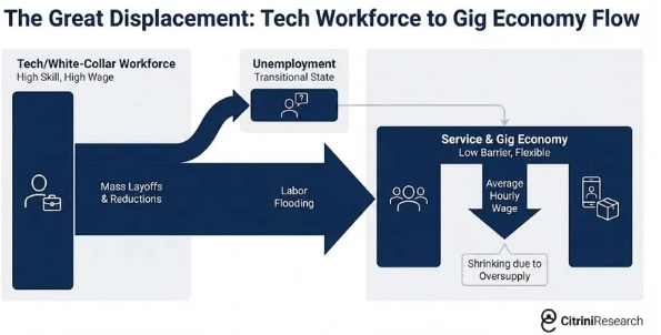 One person’s tragedy. Multiply it by hundreds of thousands across every major city — and it becomes an economic catastrophe. Because these weren’t factory workers. These were the people buying the houses, the cars, the holidays, the restaurant meals. The top 20% of earners drive 65% of all consumer spending in America.