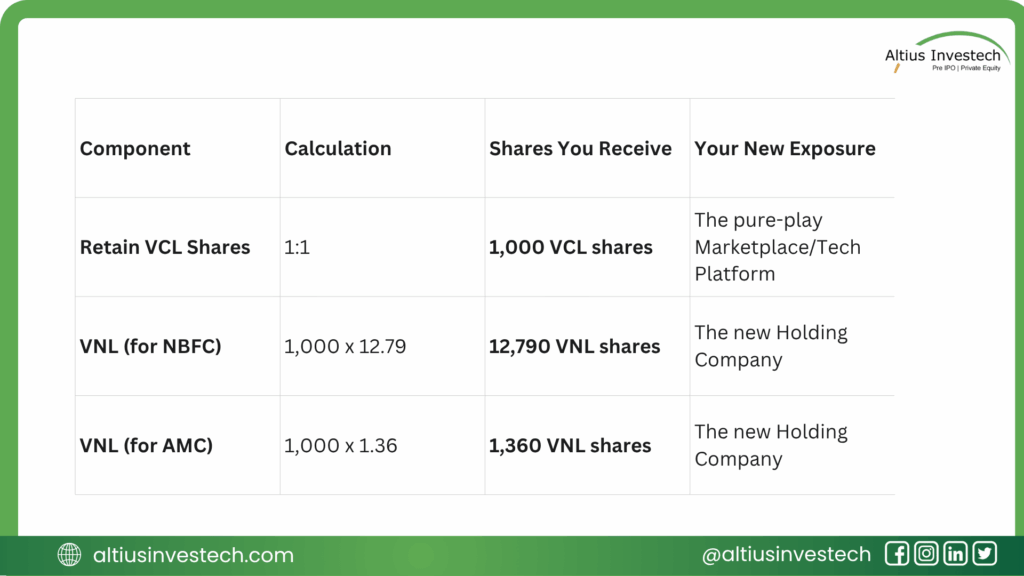 If you hold 1,000 shares of Vivriti Capital (VCL) today, here is what your portfolio will look like after the split: