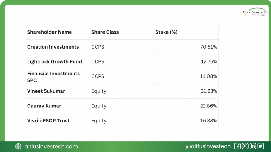 This is not a traditional “promoter-run” company. While the founders hold significant equity, the real power lies with the institutional investors holding preference shares.
