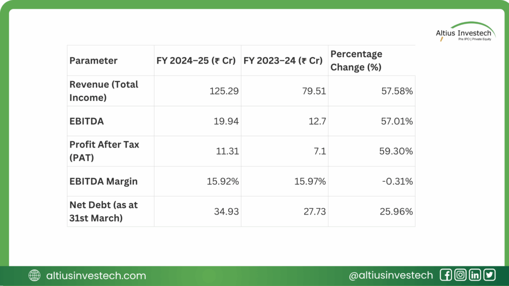 The Good: A spectacular growth story. Revenue surged to ₹125 Cr (from ₹79 Cr), and Net Profit hit ₹11.3 Cr (from ₹7.1 Cr).